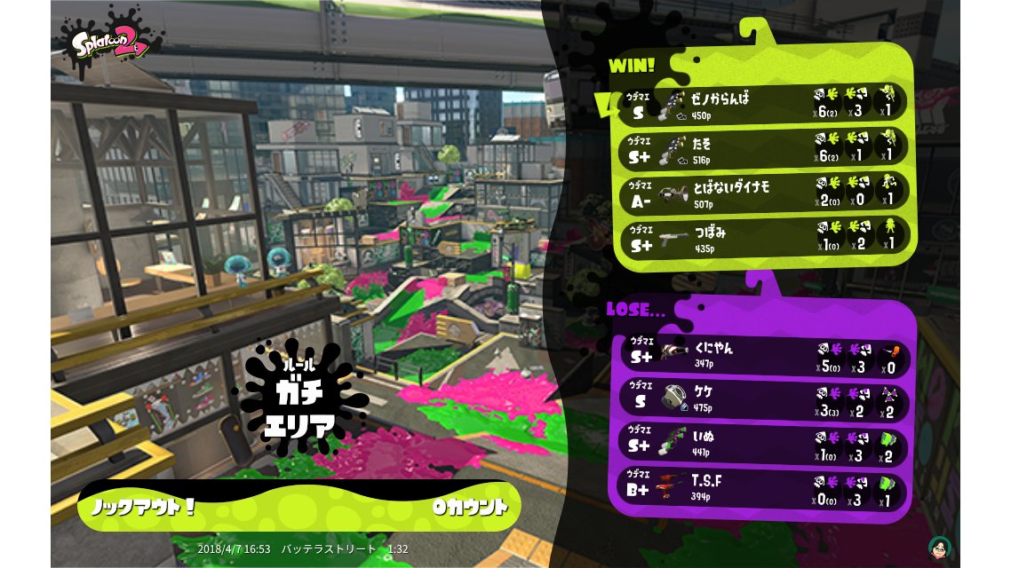 | Name | Weapon | Level | Rank | Inked | k+a/sp | k/d |