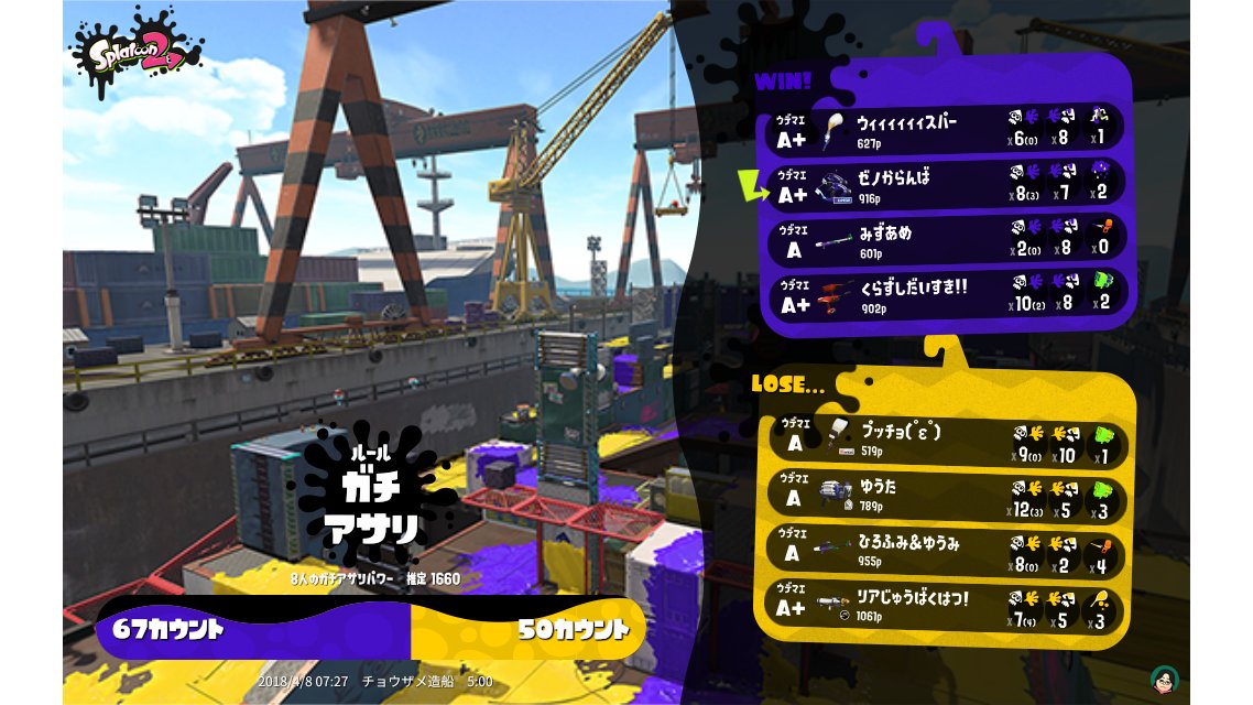 | Name | Weapon | Level | Rank | Inked | k+a/sp | k/d |