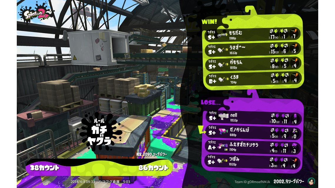 | Name | Weapon | Level | Rank | Inked | k+a/sp | k/d |