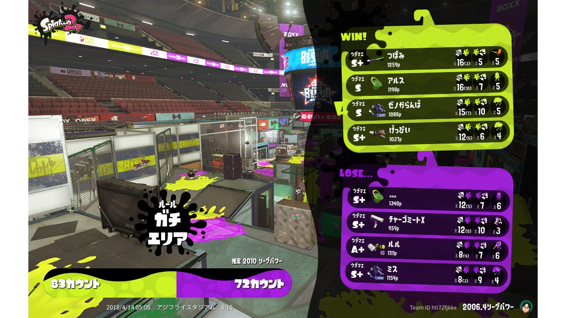 | Mode | Splat Zones - League Battle (Quad) |