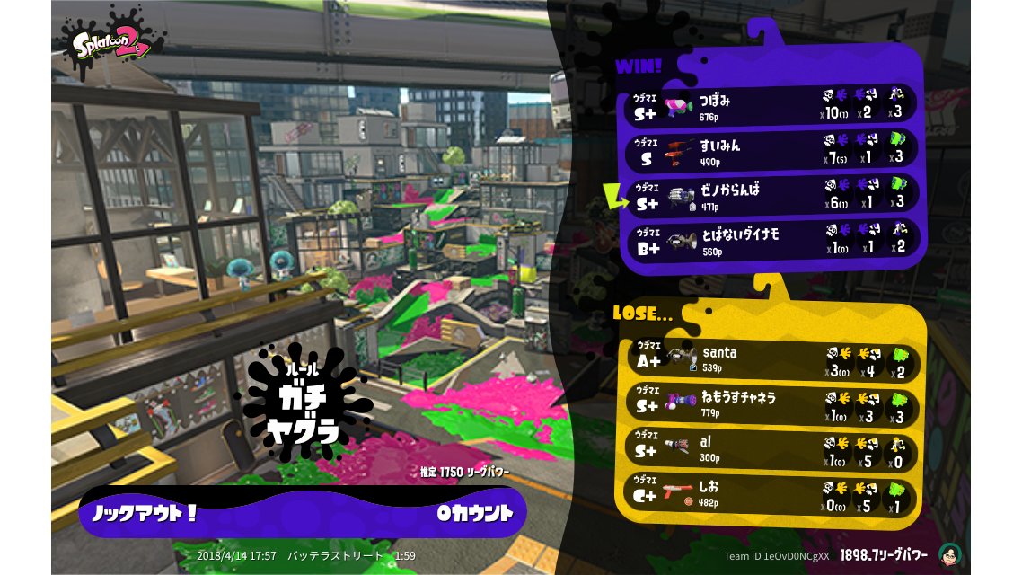 | Name | Weapon | Level | Rank | Inked | k+a/sp | k/d |
