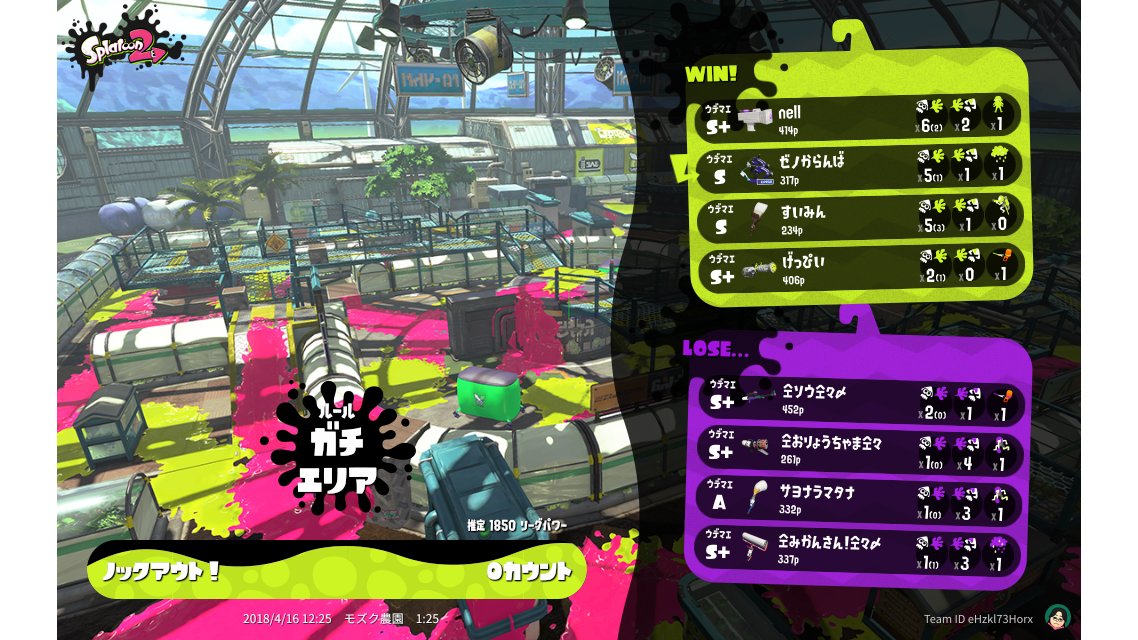 | Mode | Splat Zones - League Battle (Quad) |