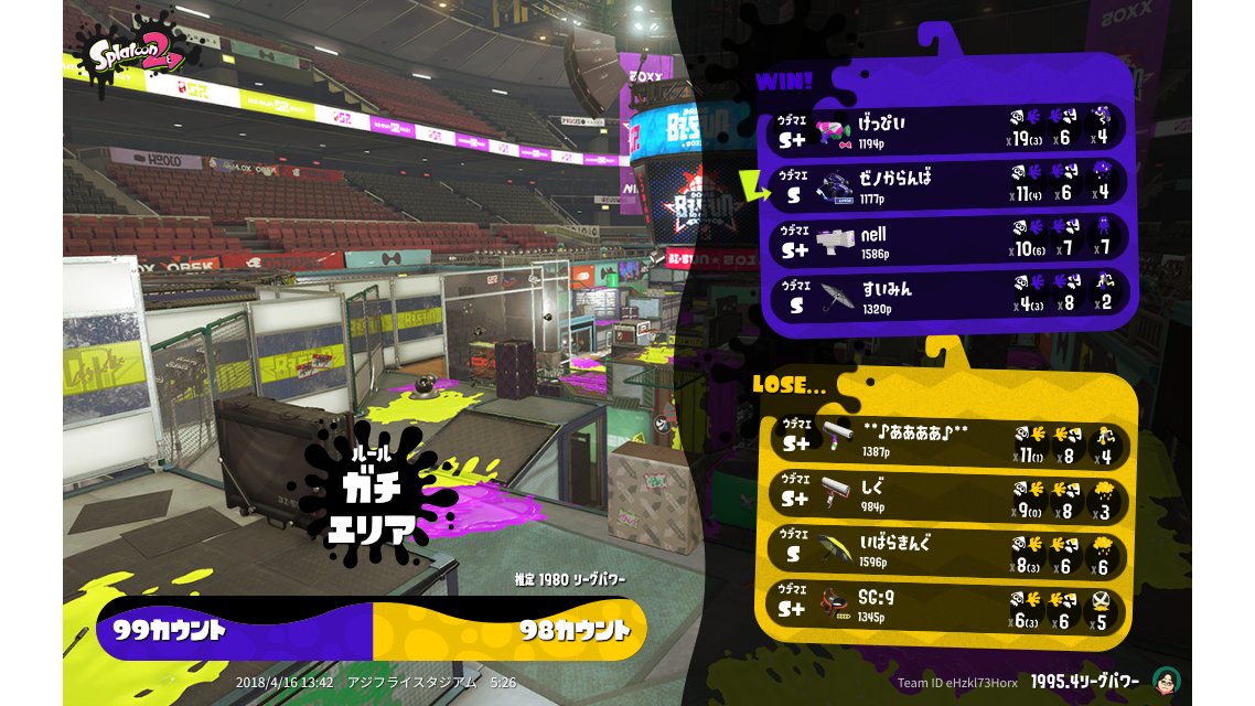 | Mode | Splat Zones - League Battle (Quad) |
