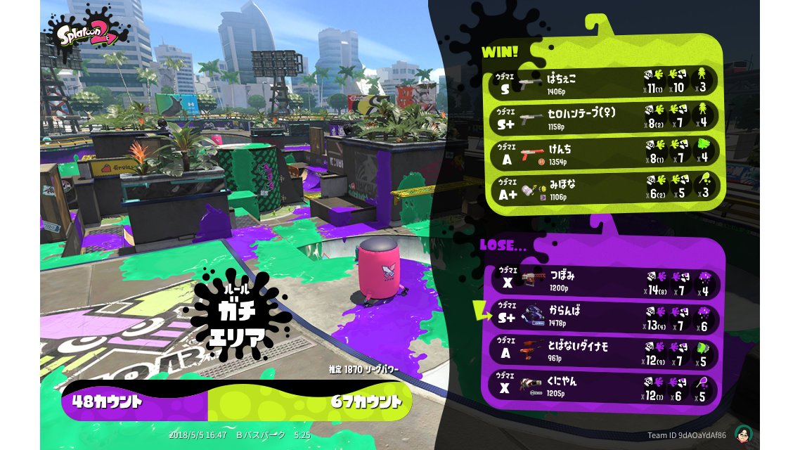 | Mode | Splat Zones - League Battle (Quad) | |||||||||||||||||||||||||||||||