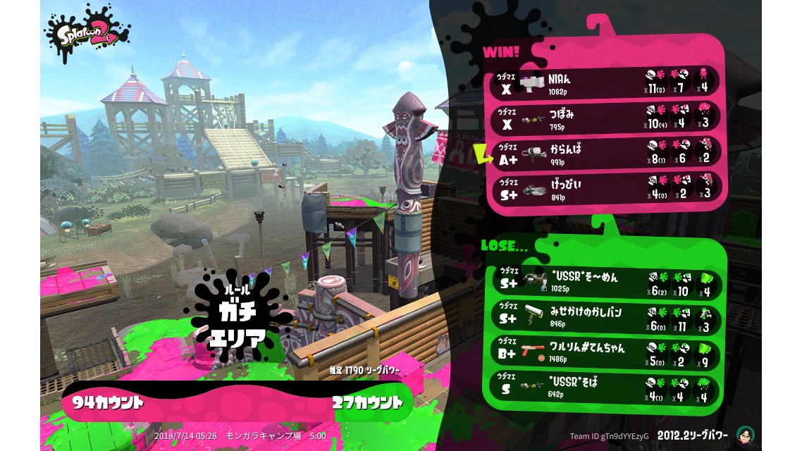 | Mode | Splat Zones - League Battle (Quad) | ||||||||||||||||||||||||||||||||||