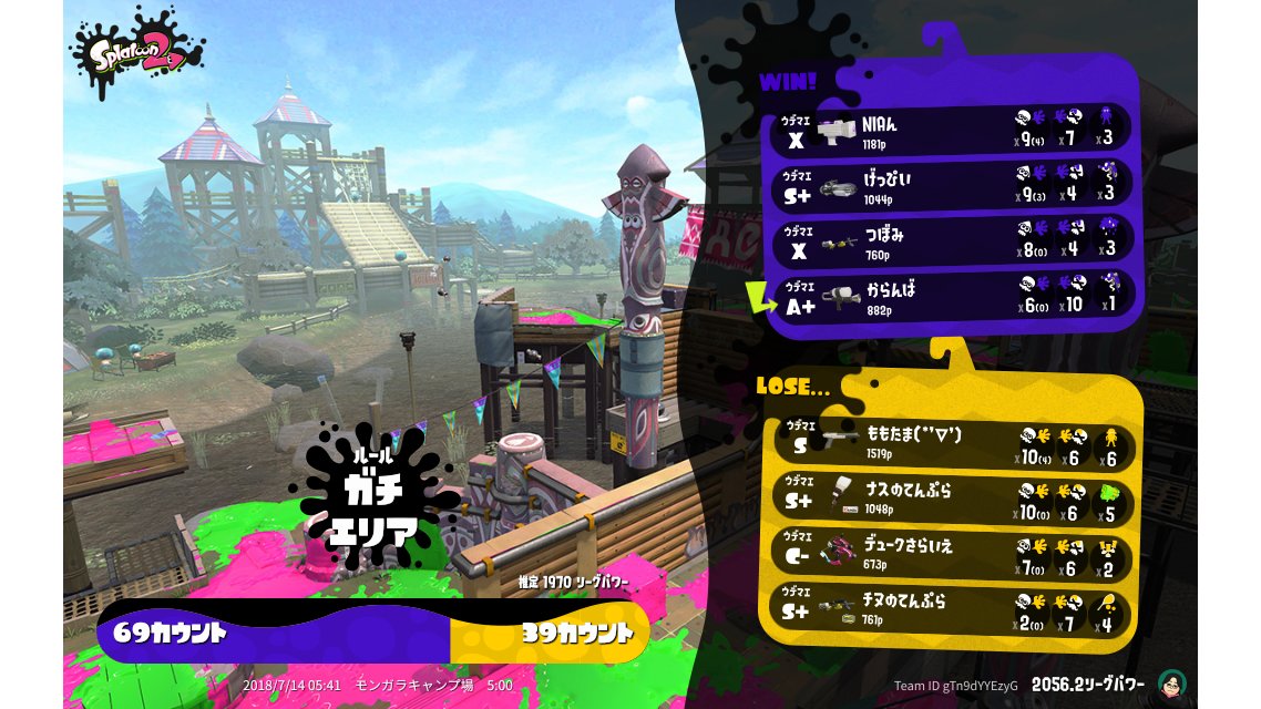 | Mode | Splat Zones - League Battle (Quad) | ||||||||||||||||||||||||||||||||||