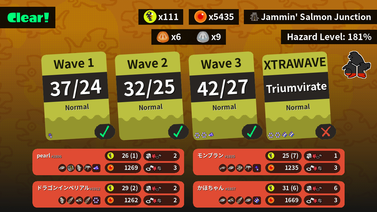 | Weapons | Grizzco Brella Grizzco Slosher Grizzco Stringer Grizzco Roller | Grizzco Brella Grizzco Blaster Grizzco Splatana Grizzco Brella | Grizzco Stringer Grizzco Splatana Grizzco Blaster Grizzco Splatana | Grizzco Charger Grizzco Brella Grizzco Dualies Grizzco Roller |
