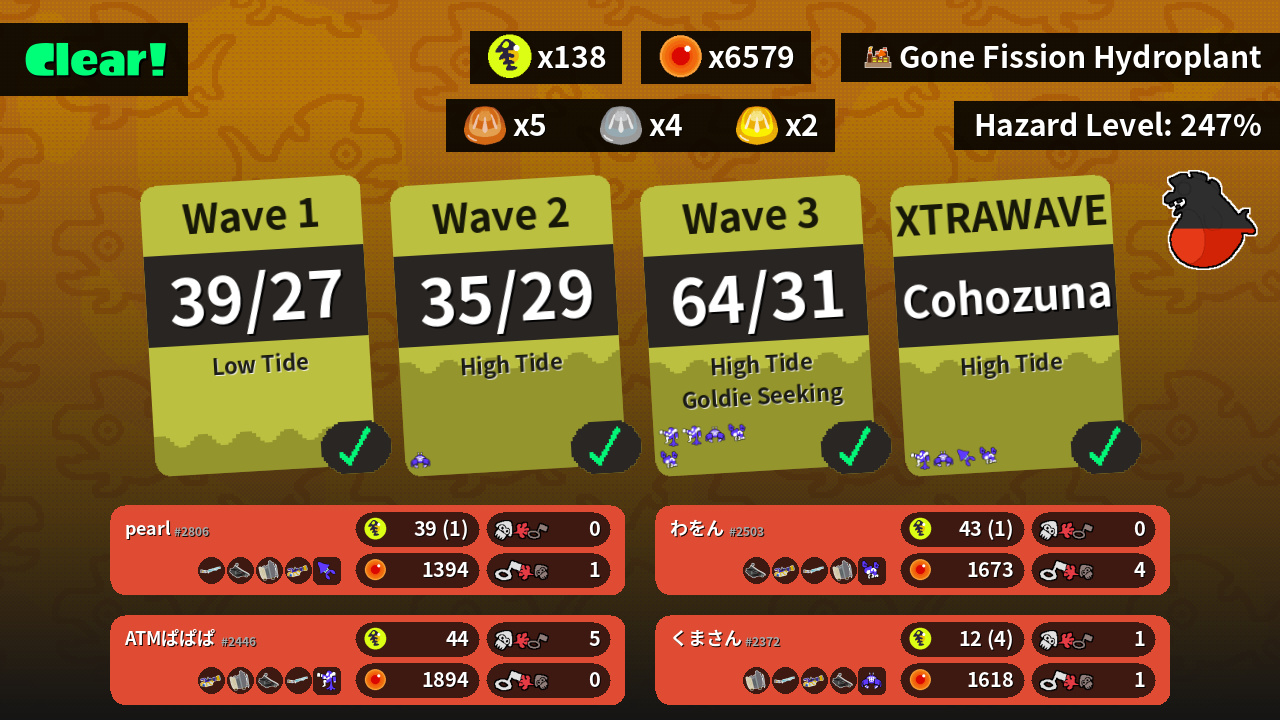 | Weapons | Classic Squiffer Bloblobber Sloshing Machine Mini Splatling | Mini Splatling Sloshing Machine Bloblobber Classic Squiffer | Bloblobber Mini Splatling Classic Squiffer Sloshing Machine | Sloshing Machine Classic Squiffer Mini Splatling Bloblobber |
