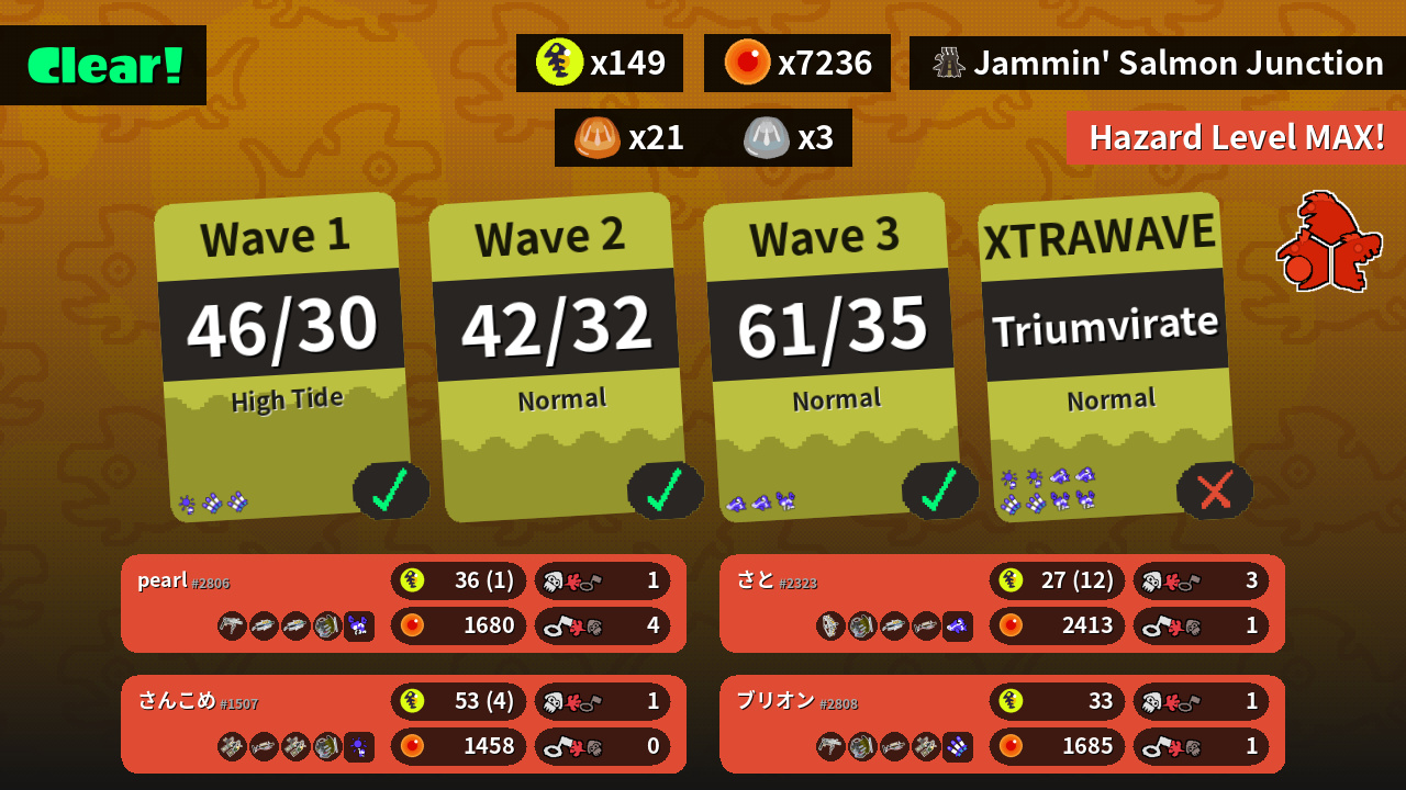 | Weapons | Grizzco Roller Grizzco Brella Grizzco Brella Grizzco Slosher | Grizzco Dualies Grizzco Charger Grizzco Dualies Grizzco Slosher | Grizzco Roller Grizzco Slosher Grizzco Charger Grizzco Dualies | Grizzco Stringer Grizzco Slosher Grizzco Brella Grizzco Charger |