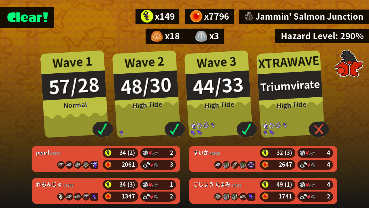 | Weapons | Grizzco Roller Grizzco Brella Grizzco Dualies Grizzco Dualies | Grizzco Dualies Grizzco Slosher Grizzco Slosher Grizzco Blaster | Grizzco Stringer Grizzco Brella Grizzco Blaster Grizzco Roller | Grizzco Brella Grizzco Slosher Grizzco Splatana Grizzco Slosher |
