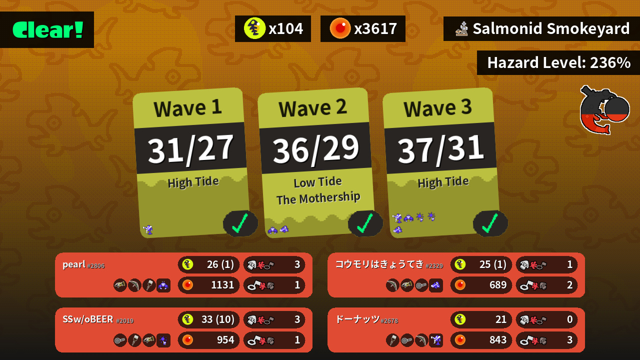 | Weapons | Sploosh-o-matic Tenta Brella Octobrush | Nautilus 47 Octobrush Sploosh-o-matic | Tenta Brella Sploosh-o-matic Nautilus 47 | Octobrush Nautilus 47 Tenta Brella |