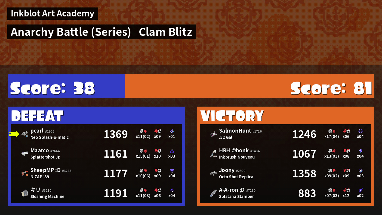 | Mode | Clam Blitz - Anarchy Battle (Series) | ||
