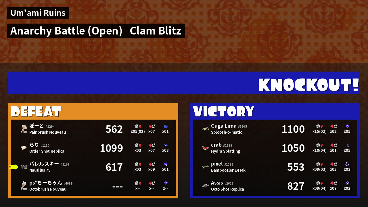 | Mode | Clam Blitz - Anarchy Battle (Open) | ||