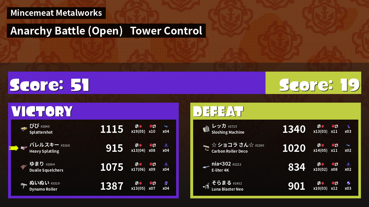 | Mode | Tower Control - Anarchy Battle (Open) | ||