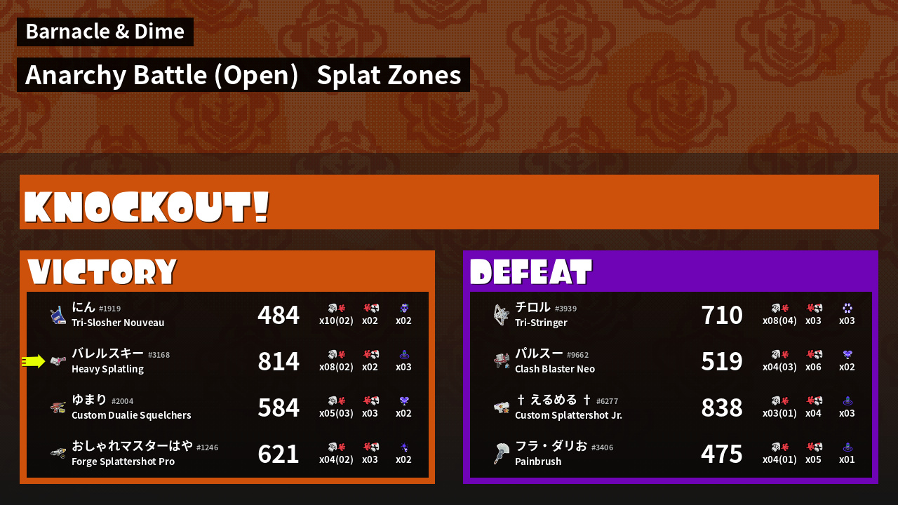 | Mode | Splat Zones - Anarchy Battle (Open) | ||