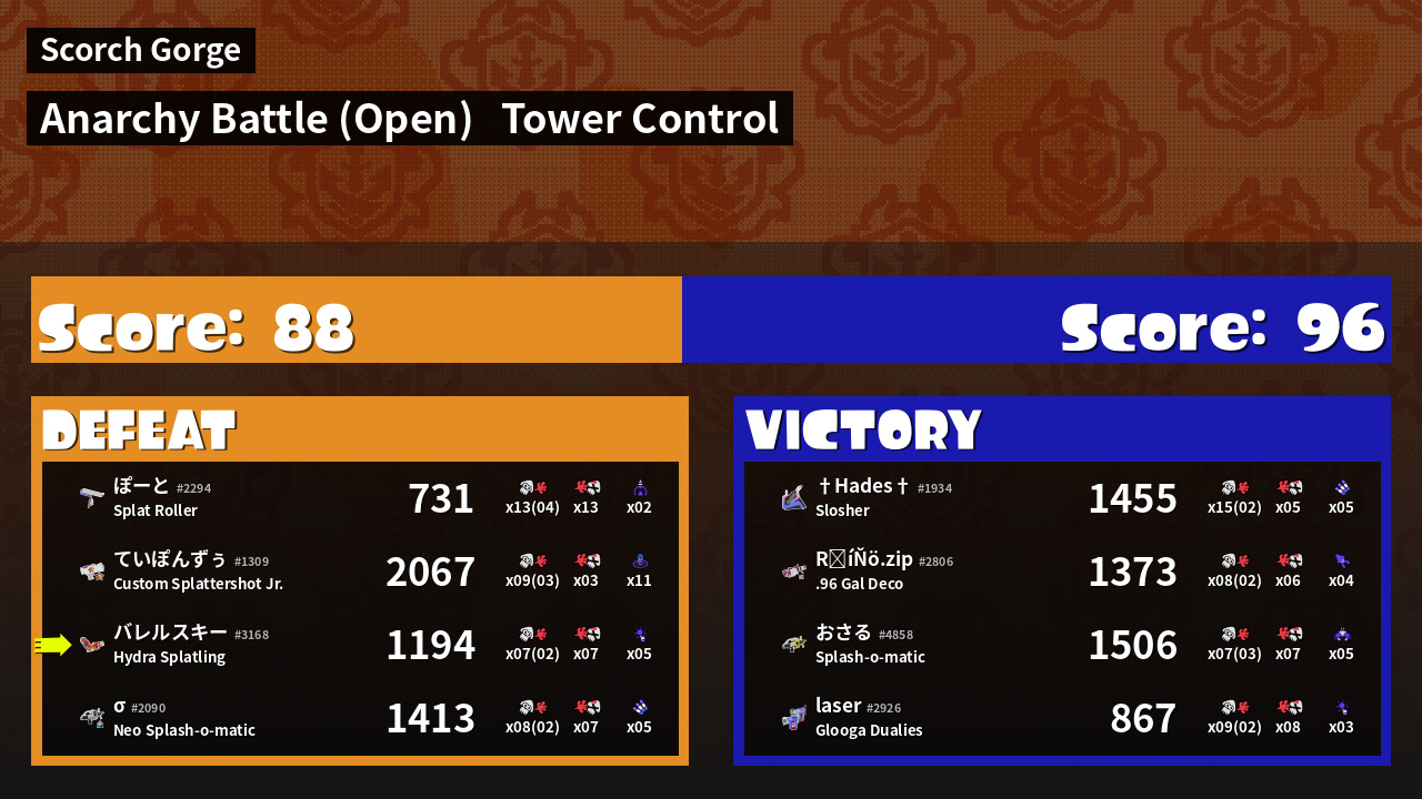 | Mode | Tower Control - Anarchy Battle (Open) | ||
