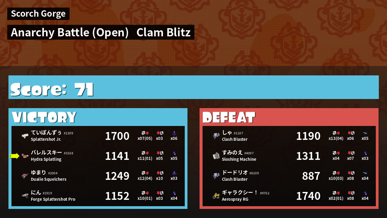 Results of バレルスキー's Battle