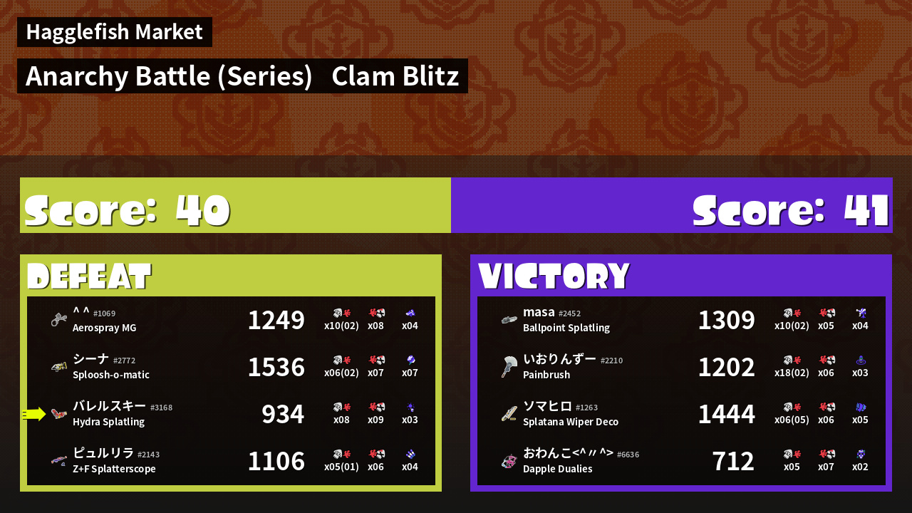 Results of バレルスキー's Battle