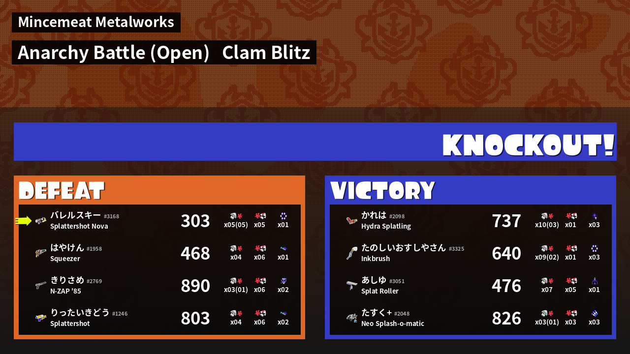 | Mode | Clam Blitz - Anarchy Battle (Open) | ||