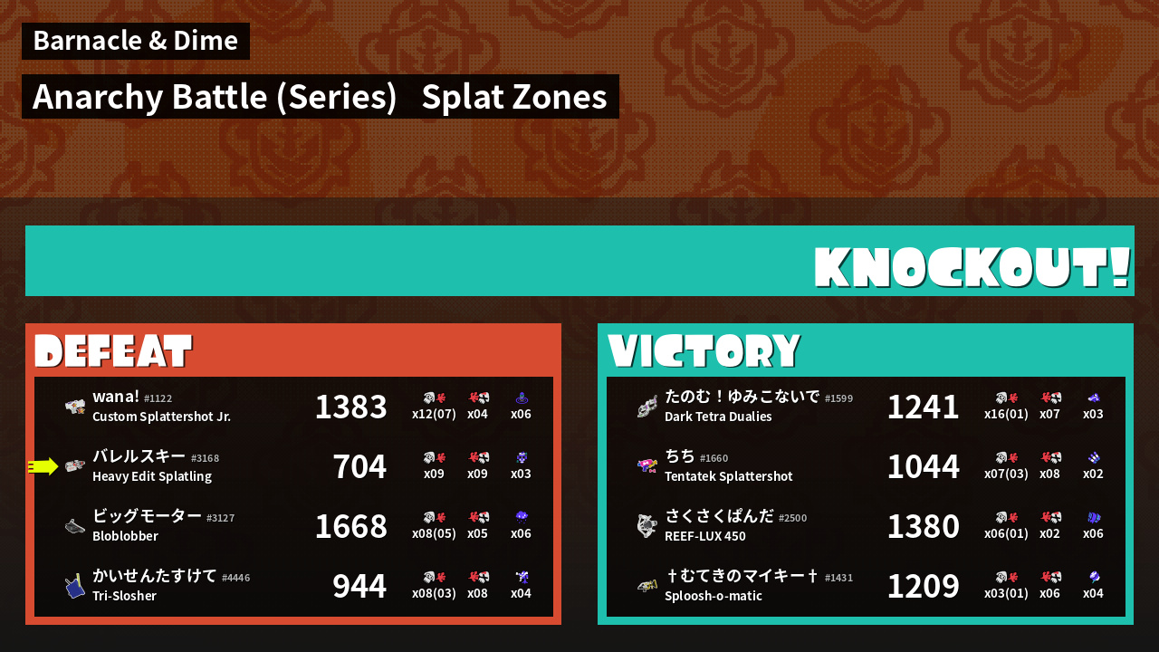 | Mode | Splat Zones - Anarchy Battle (Series) | ||