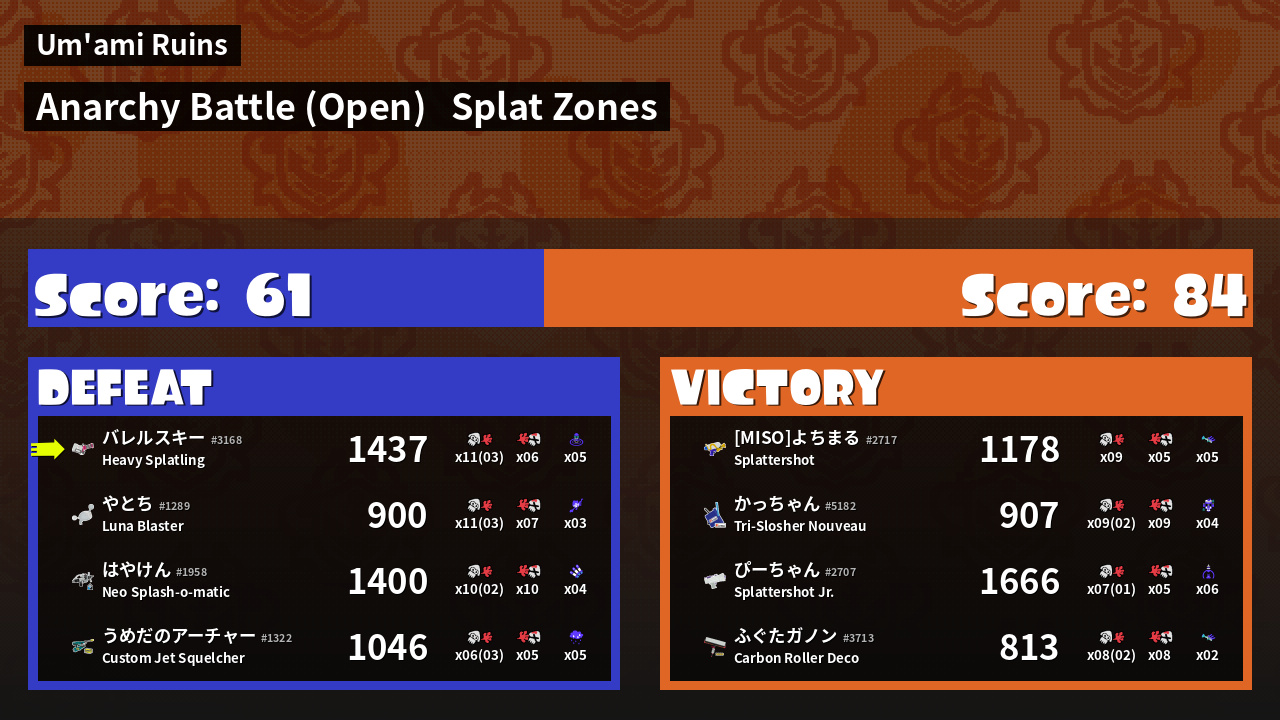 | Mode | Splat Zones - Anarchy Battle (Open) | ||