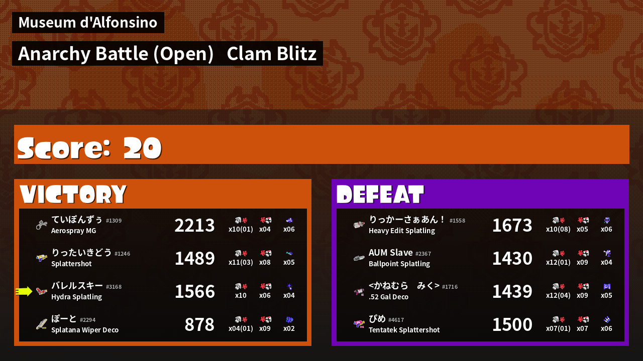 | Mode | Clam Blitz - Anarchy Battle (Open) | ||