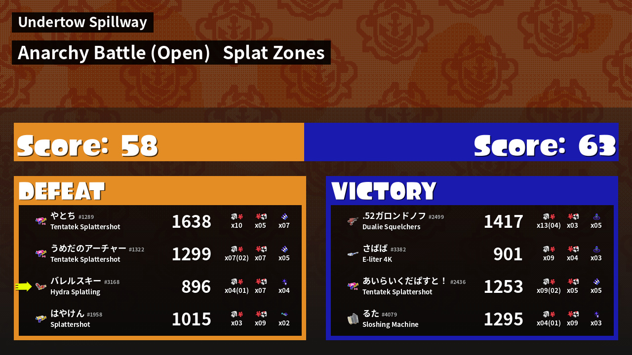 | Mode | Splat Zones - Anarchy Battle (Open) | ||