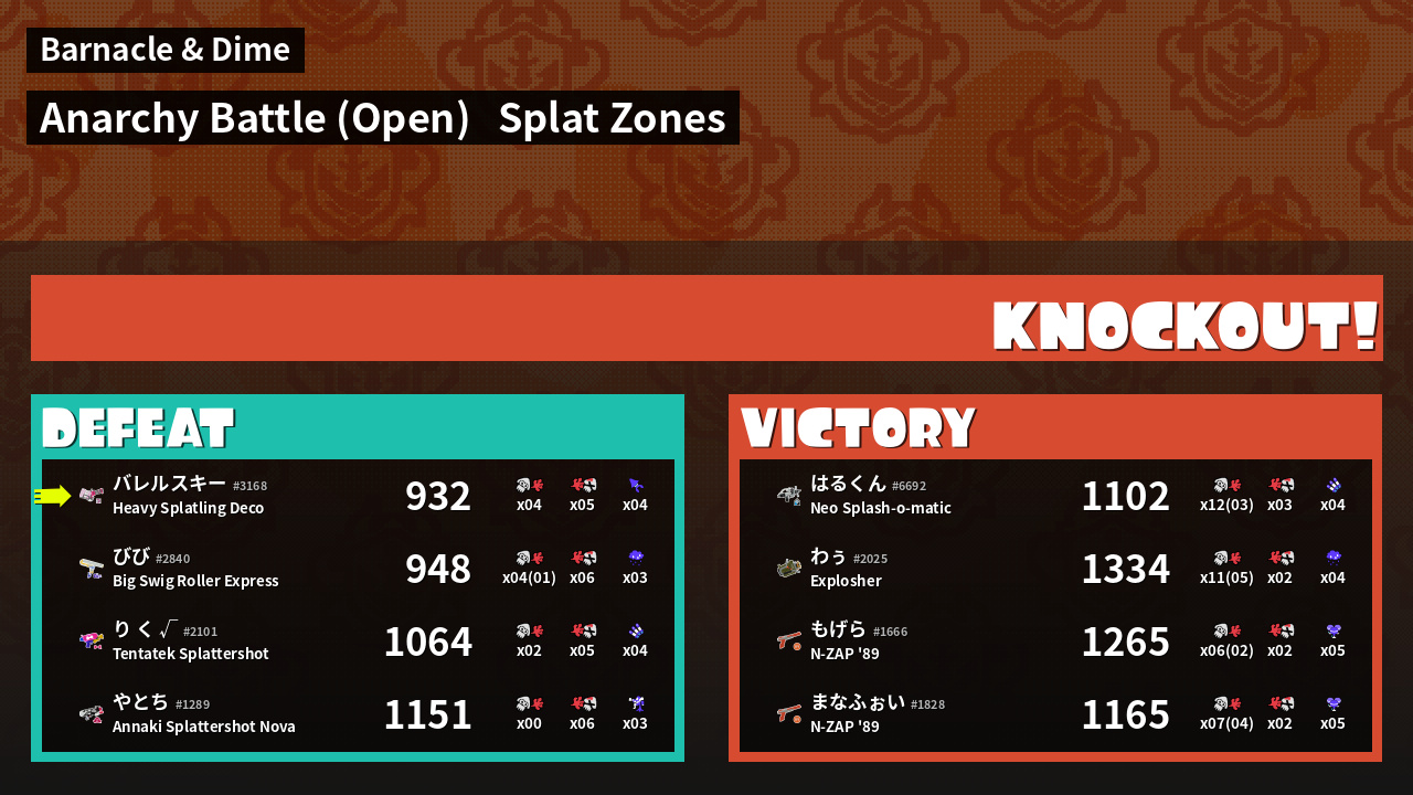 | Mode | Splat Zones - Anarchy Battle (Open) | ||