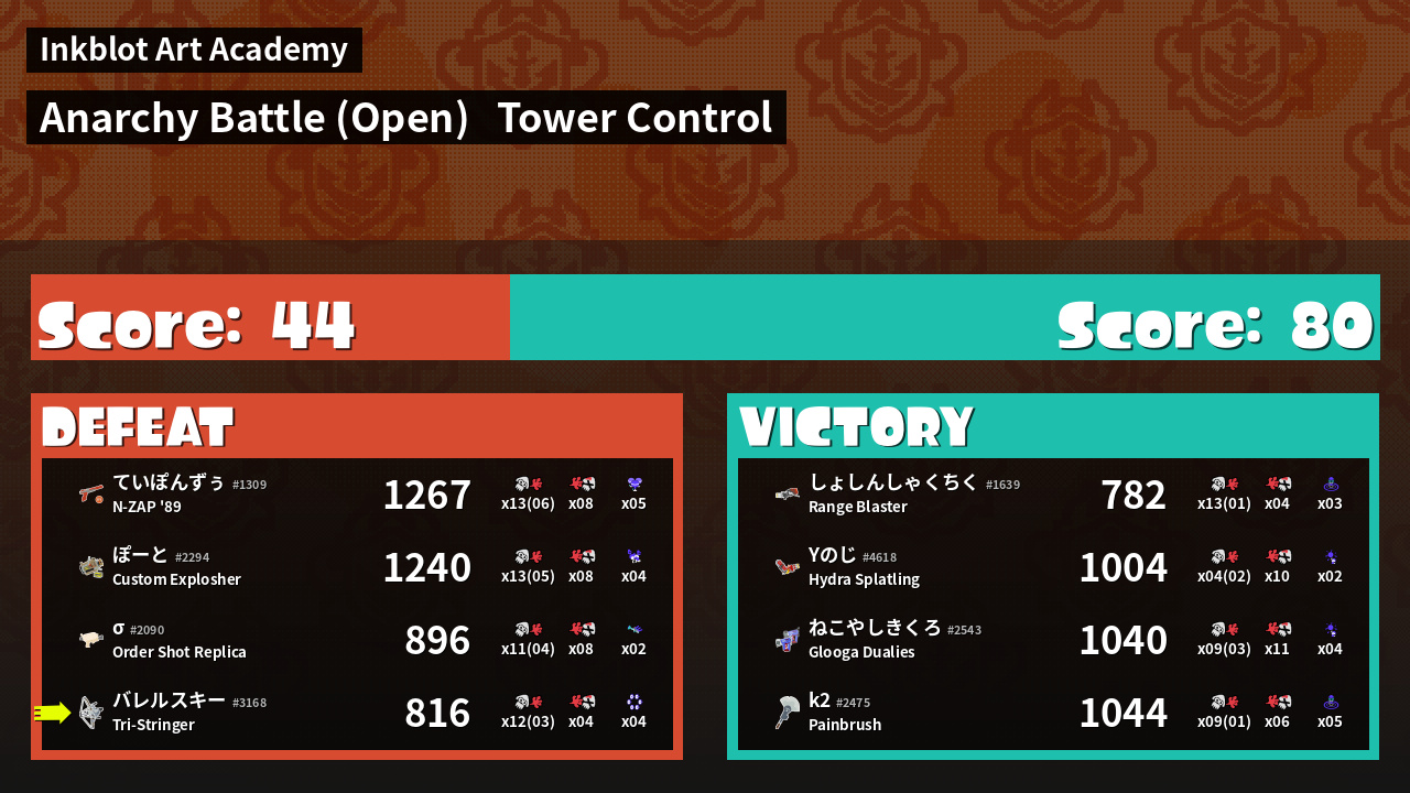 | Mode | Tower Control - Anarchy Battle (Open) | ||