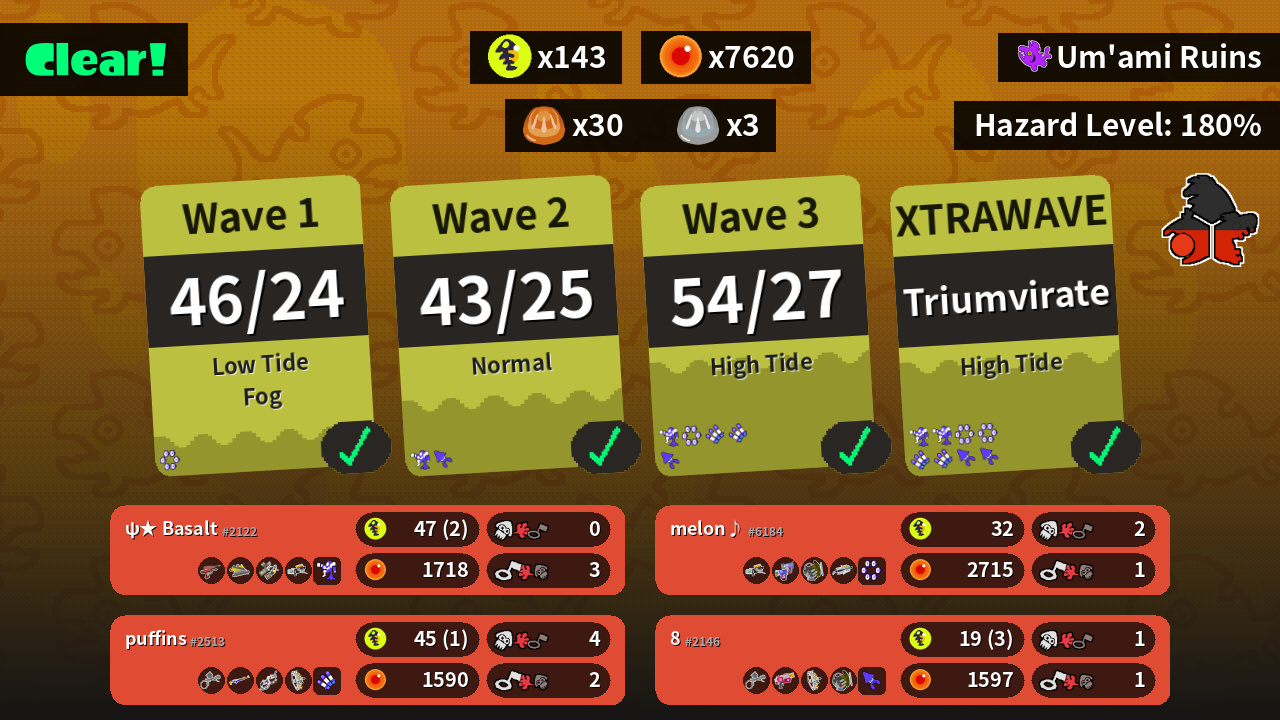 | Boss Salmonid | 19 | 9 | 27 | 16 |