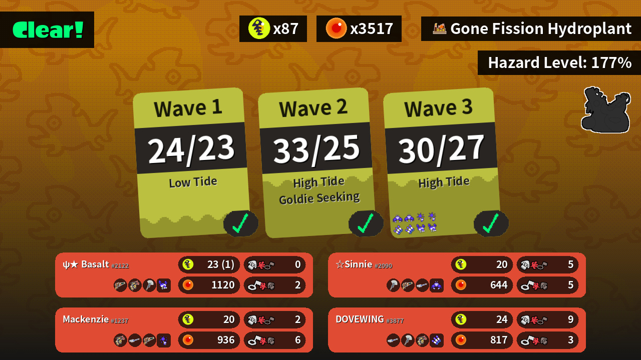 | Weapons | Squeezer Douser Dualies FF Painbrush | E-liter 4K Painbrush Douser Dualies FF | Douser Dualies FF E-liter 4K Squeezer | Painbrush Squeezer E-liter 4K |