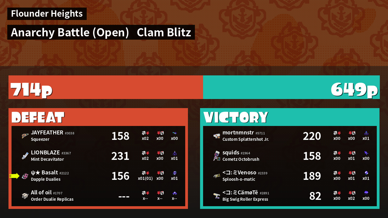 | Mode | Clam Blitz - Anarchy Battle (Open) | ||