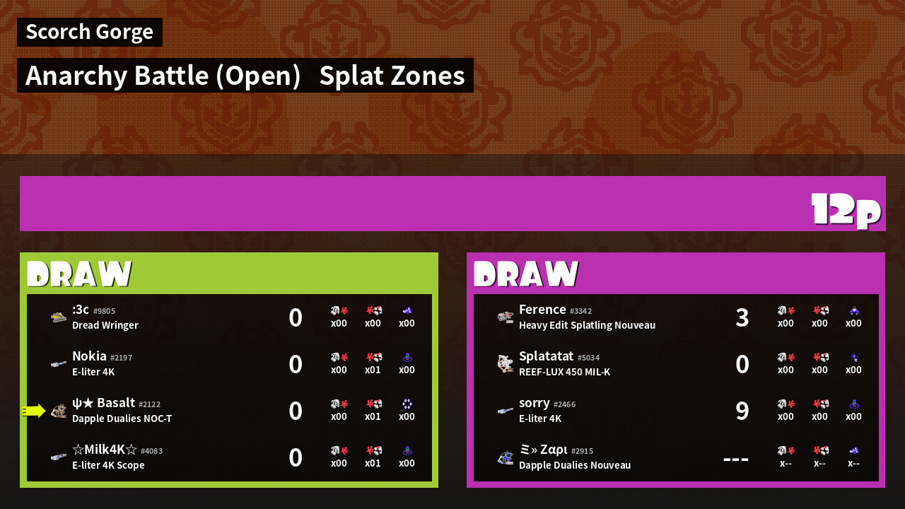 | Mode | Splat Zones - Anarchy Battle (Open) | ||