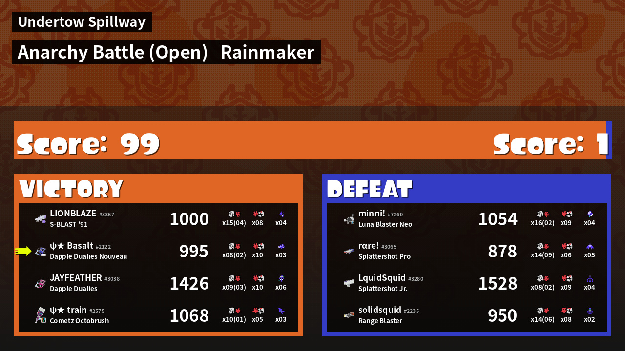 | Mode | Rainmaker - Anarchy Battle (Open) | ||