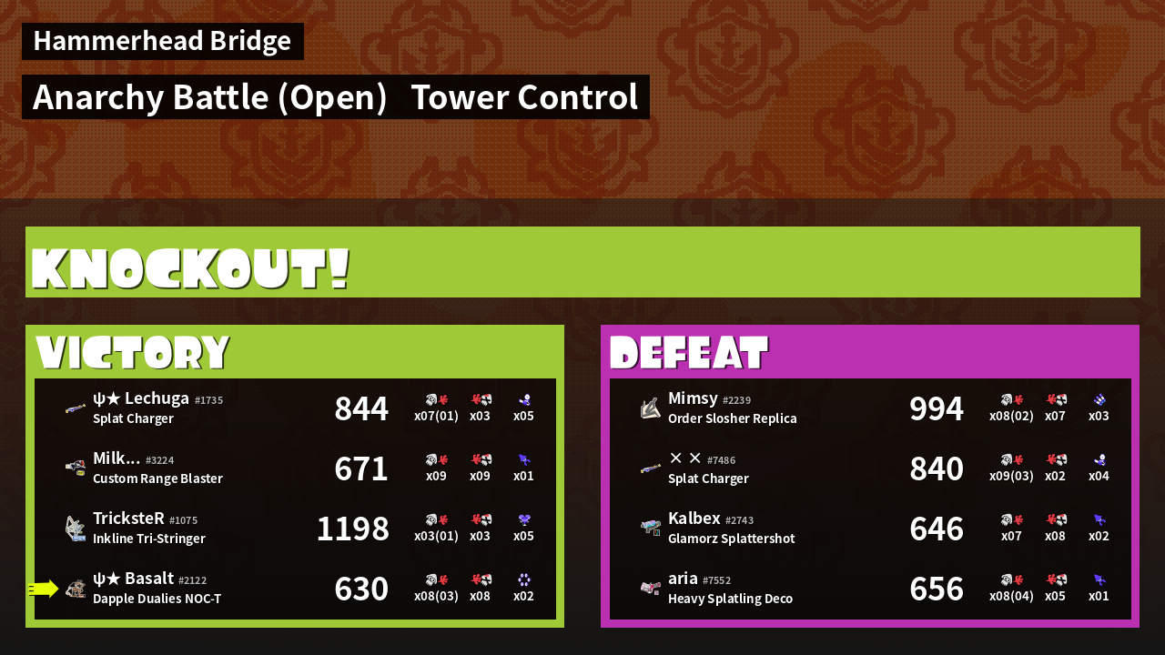 | Mode | Tower Control - Anarchy Battle (Open) | ||