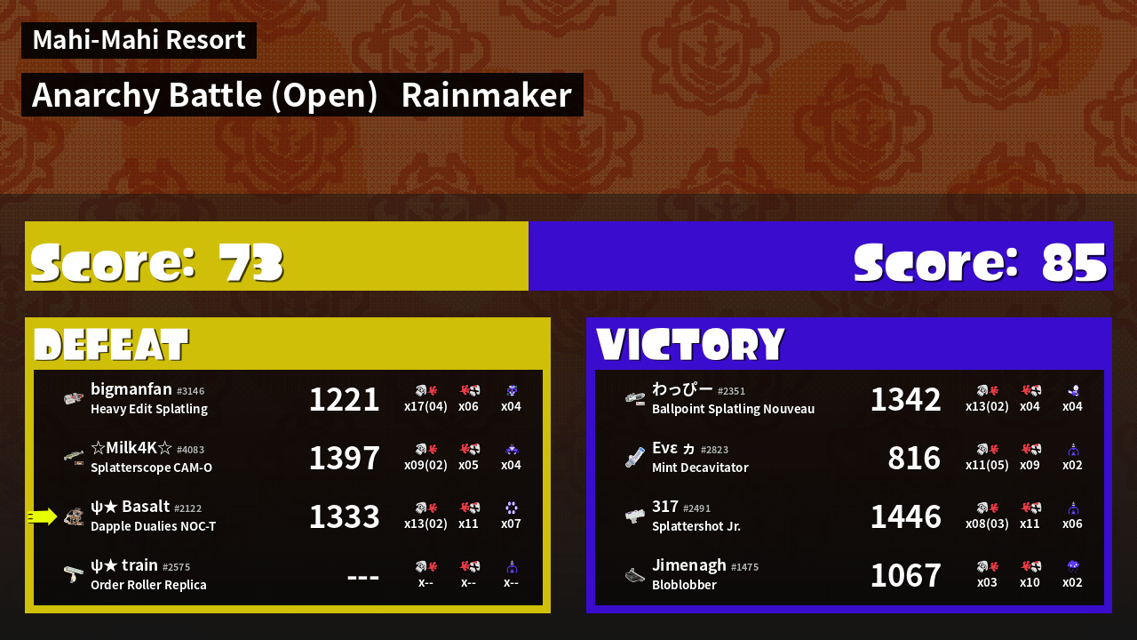 | Mode | Rainmaker - Anarchy Battle (Open) | ||