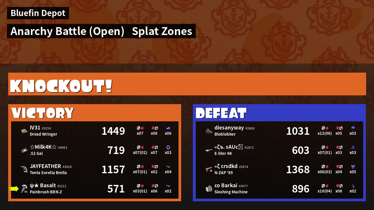 | Mode | Splat Zones - Anarchy Battle (Open) | ||