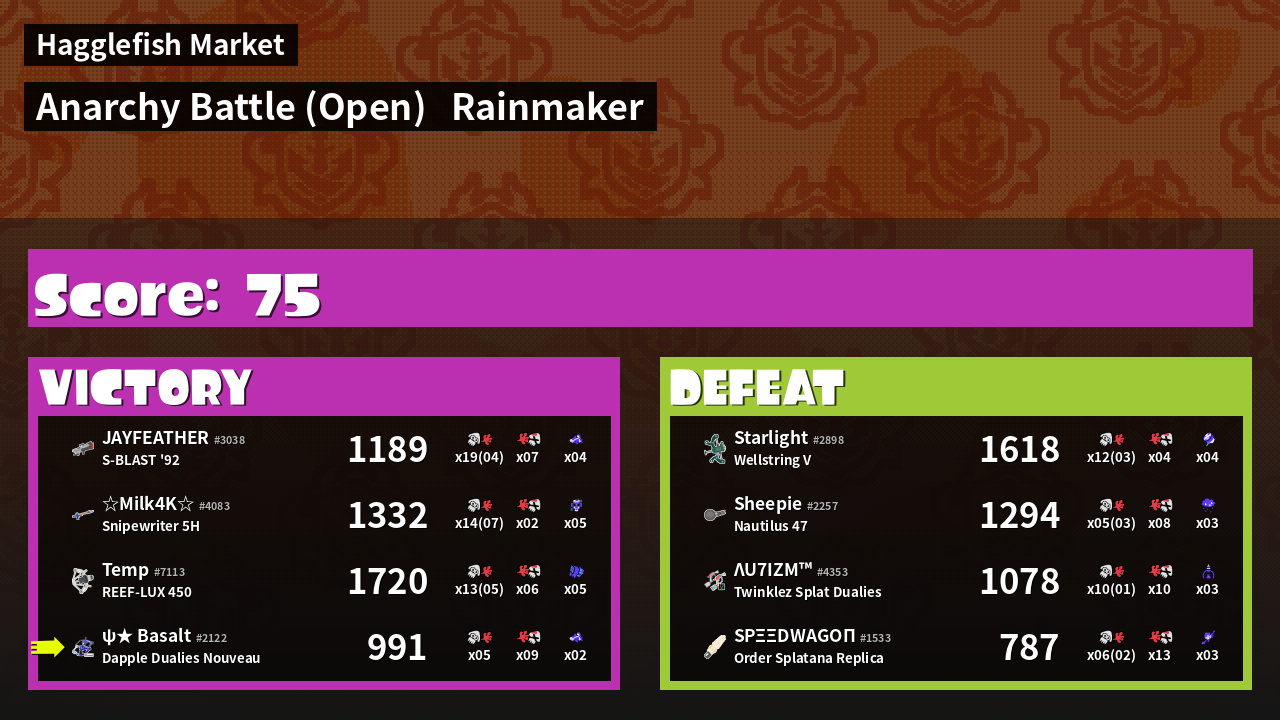 | Mode | Rainmaker - Anarchy Battle (Open) | ||