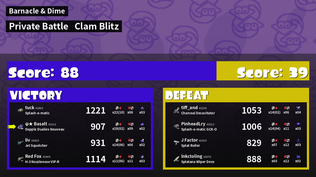 | Mode | Clam Blitz - Private Battle | ||