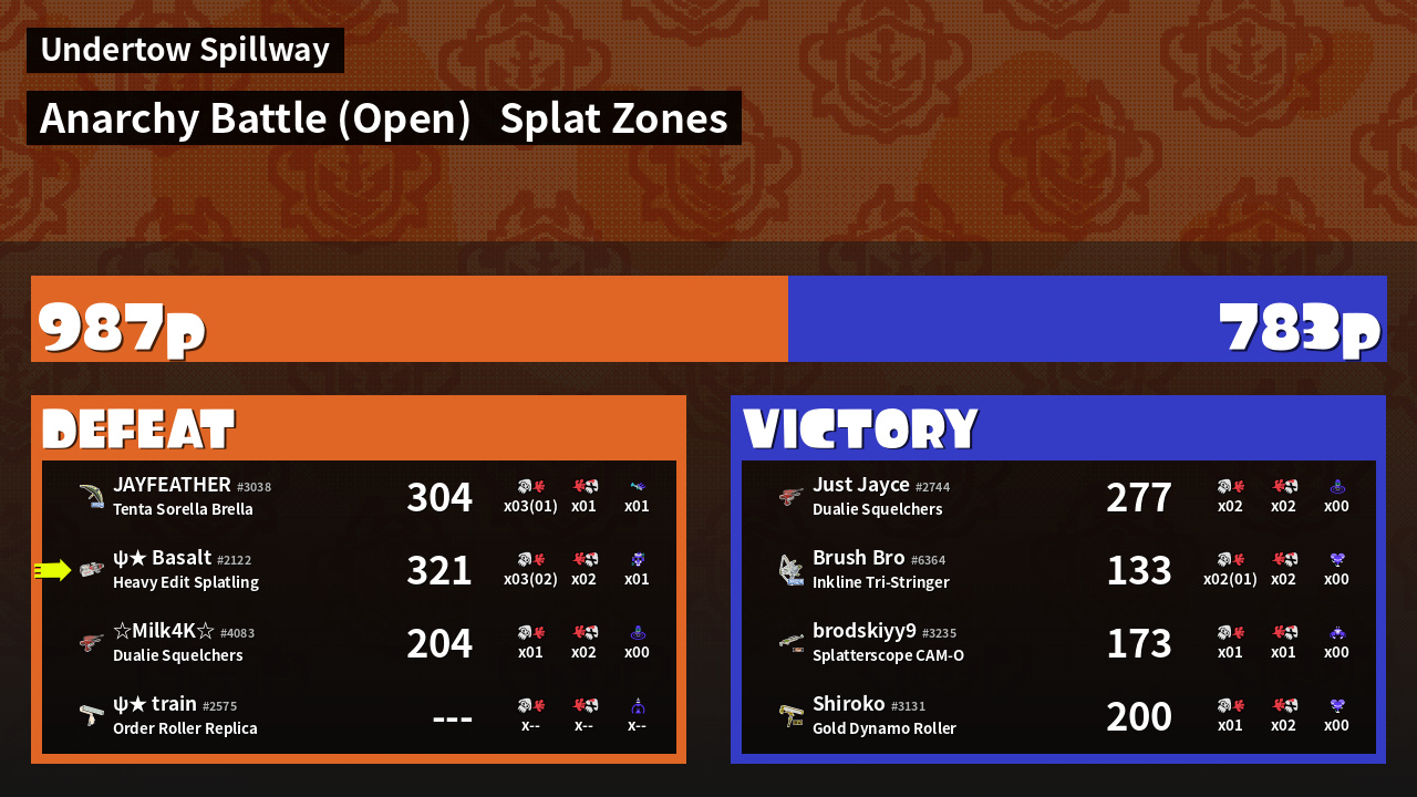 | Mode | Splat Zones - Anarchy Battle (Open) | ||