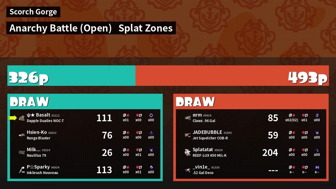 | Mode | Splat Zones - Anarchy Battle (Open) | ||