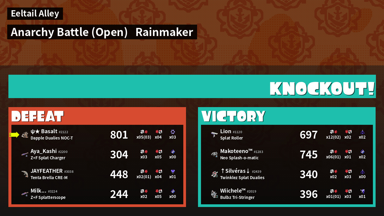 | Mode | Rainmaker - Anarchy Battle (Open) | ||