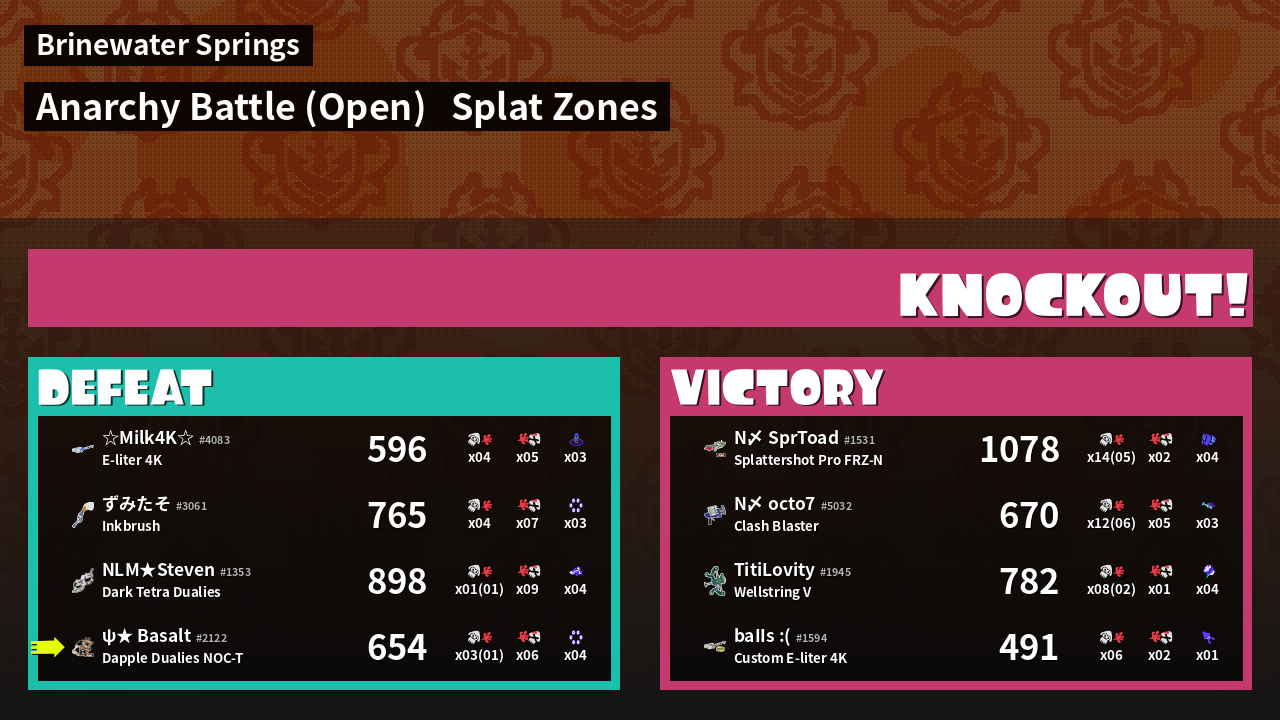| Mode | Splat Zones - Anarchy Battle (Open) | ||