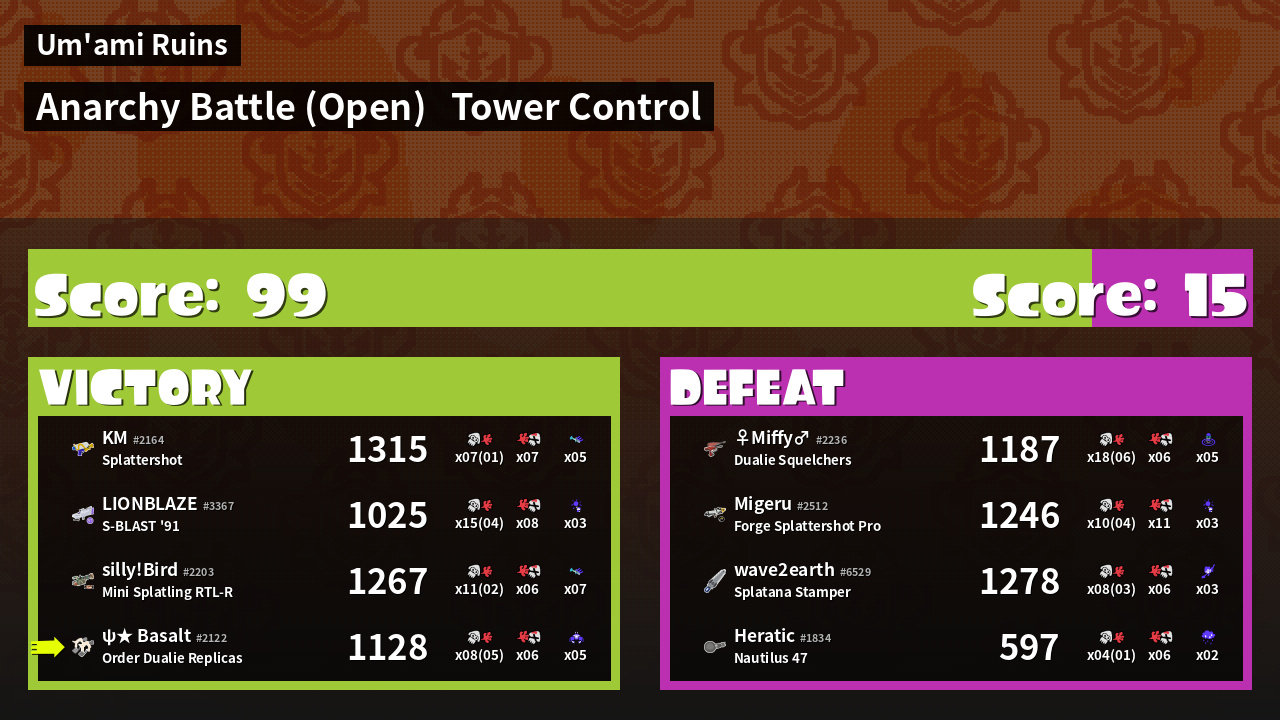 | Mode | Tower Control - Anarchy Battle (Open) | ||