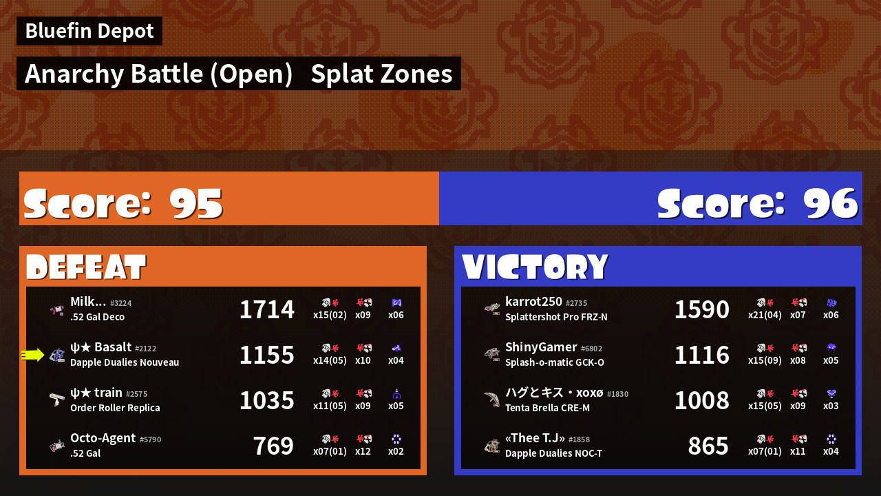 | Mode | Splat Zones - Anarchy Battle (Open) | ||