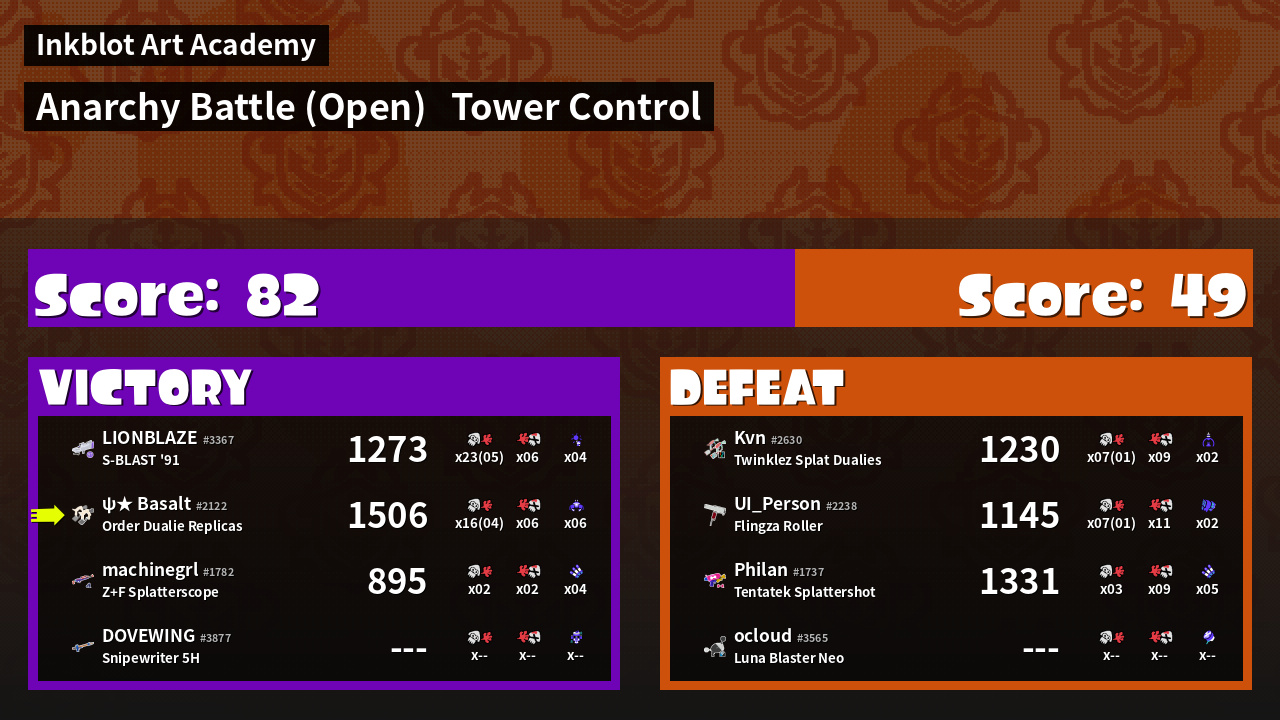 | Mode | Tower Control - Anarchy Battle (Open) | ||
