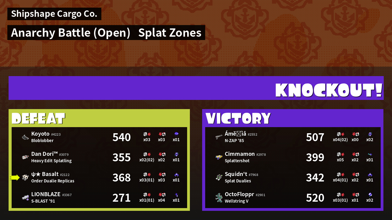 | Mode | Splat Zones - Anarchy Battle (Open) | ||