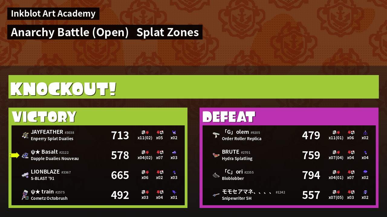 | Mode | Splat Zones - Anarchy Battle (Open) | ||