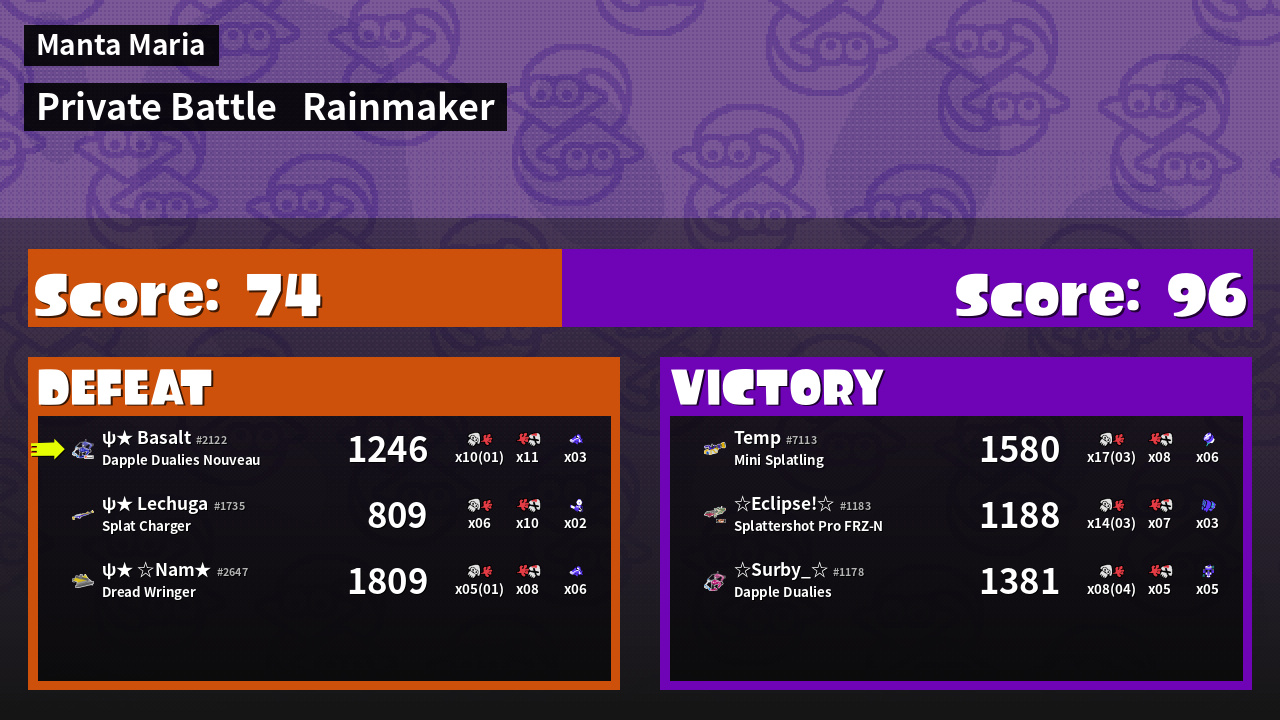 | Medals | #1 Overall Splatter #1 Enemy Splatter #1 Splat Assister | ||