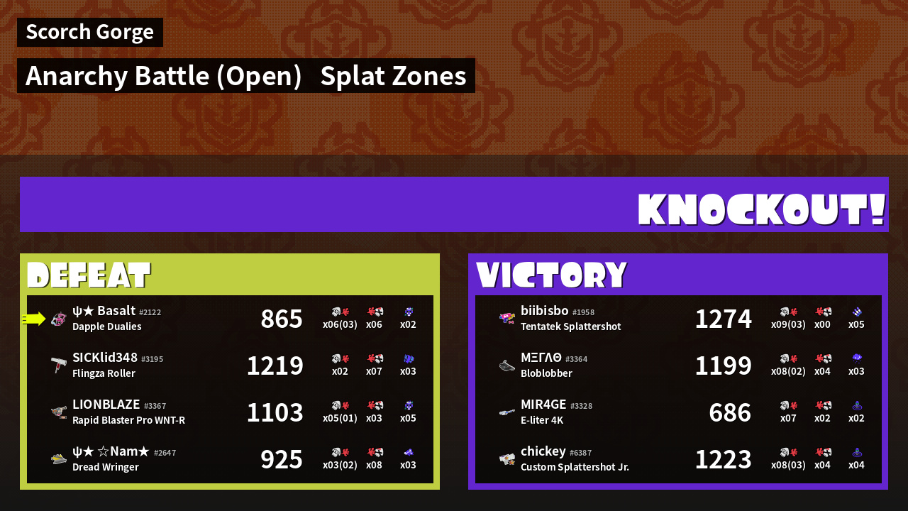 | Mode | Splat Zones - Anarchy Battle (Open) | ||